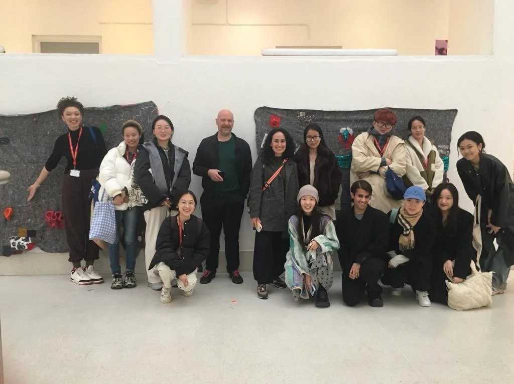 Collaborating with a diverse group of 20 international creatives and researchers across a range of ages and genders, to co-create a textile workshop in 2024. Sharing darning needles, threads and materials, the group sewed and embroidered a comforting blanket made of recycled material while talking about research into gender politics in fabric art. The final piece was hung in a public space.